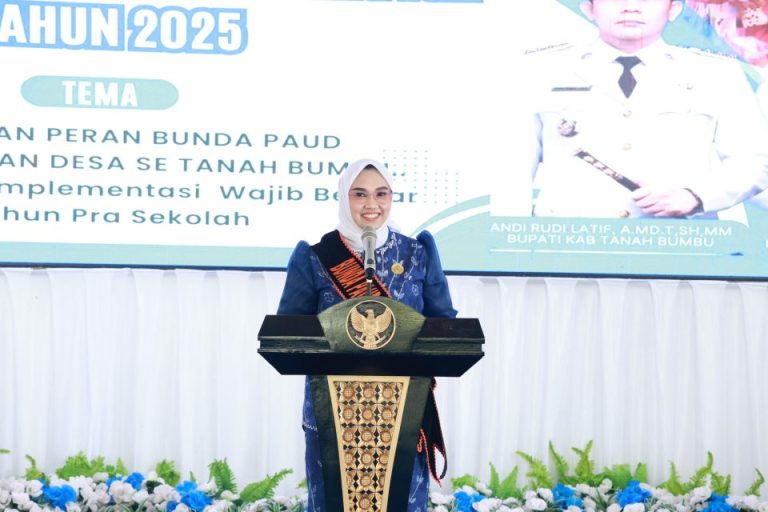 Tanah Bumbu – Bunda PAUD Kabupaten Tanah Bumbu, Andi Irmayani Rudi Latif, menegaskan pentingnya sinergi antara lembaga pendidikan anak usia dini (PAUD) dan keluarga dalam membentuk generasi emas Indonesia.